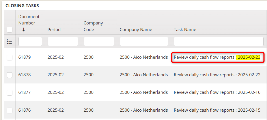 - Since the daily tasks are most likely to run from the beginning of the period, they will need to be generated at a much earlier time than tradition Aico tasks like Account reconciliations or closing. It is therefore recommended that you set these up in a separate Automation manager process which will make them easier to generate separately from other tasks.